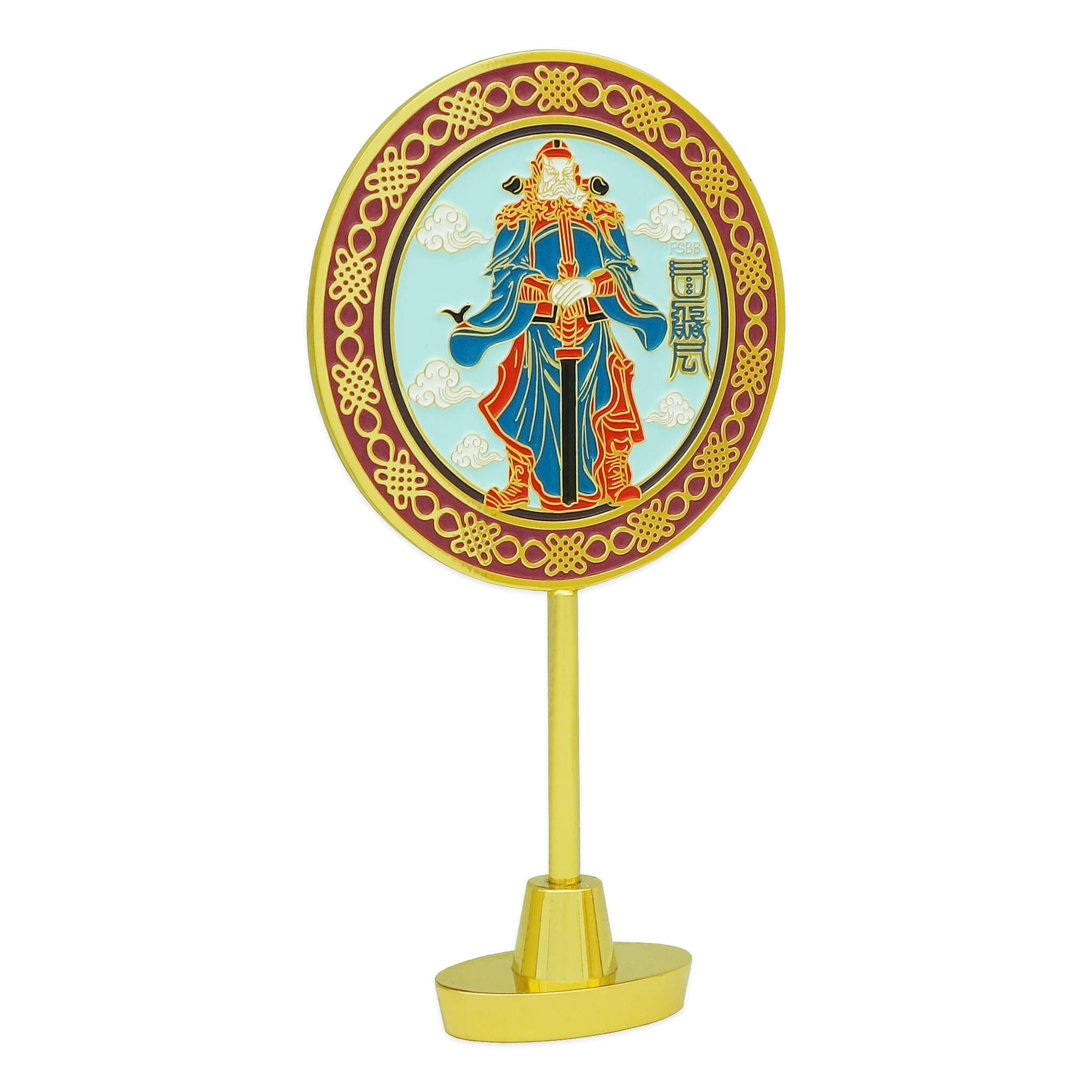 Crafted with exceptional precision and plated in radiant, high-quality gold-tone metal, this FSBB Standing Magic Mirror of Chung Kwei is a masterpiece inspired by the legendary Hu Hsin Ching — the ancient Taoist brass mirrors renowned for their mystical protective powers. Beautifully detailed with rich enamel colors, fine metalwork, and a perfectly balanced standing base, this mirror is designed not only as a powerful feng shui remedy but also as an elegant display piece that instantly elevates the energy and aesthetics of any space.