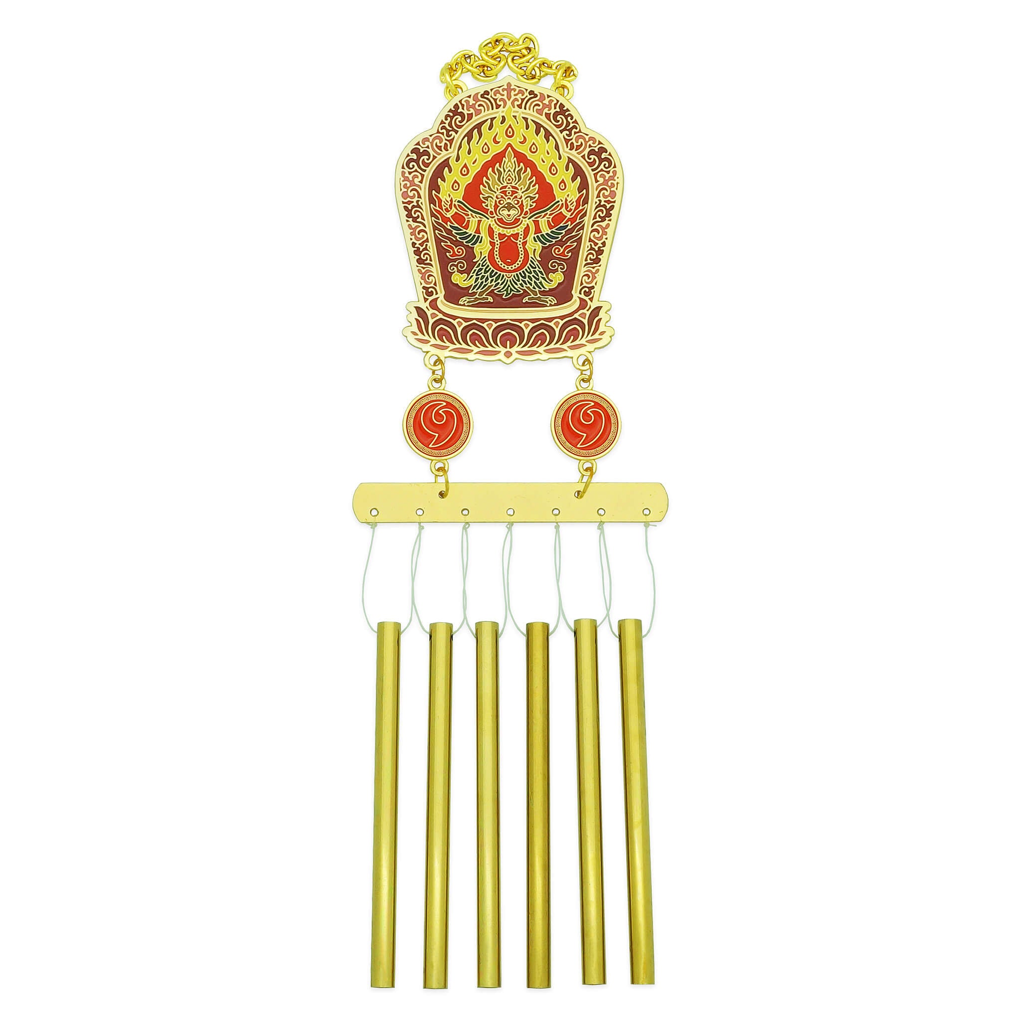 Exclusively crafted by FSBB, the Garuda Celestial Guardian Wind Chime of Triumph is a masterpiece of spiritual symbolism, protective energy, and high-quality craftsmanship. Featuring the fierce Garuda on the front, the sacred Kalachakra seal on the reverse, and six resonant brass rods, this powerful talisman is designed to shield, uplift, and transform the energy of any environment.