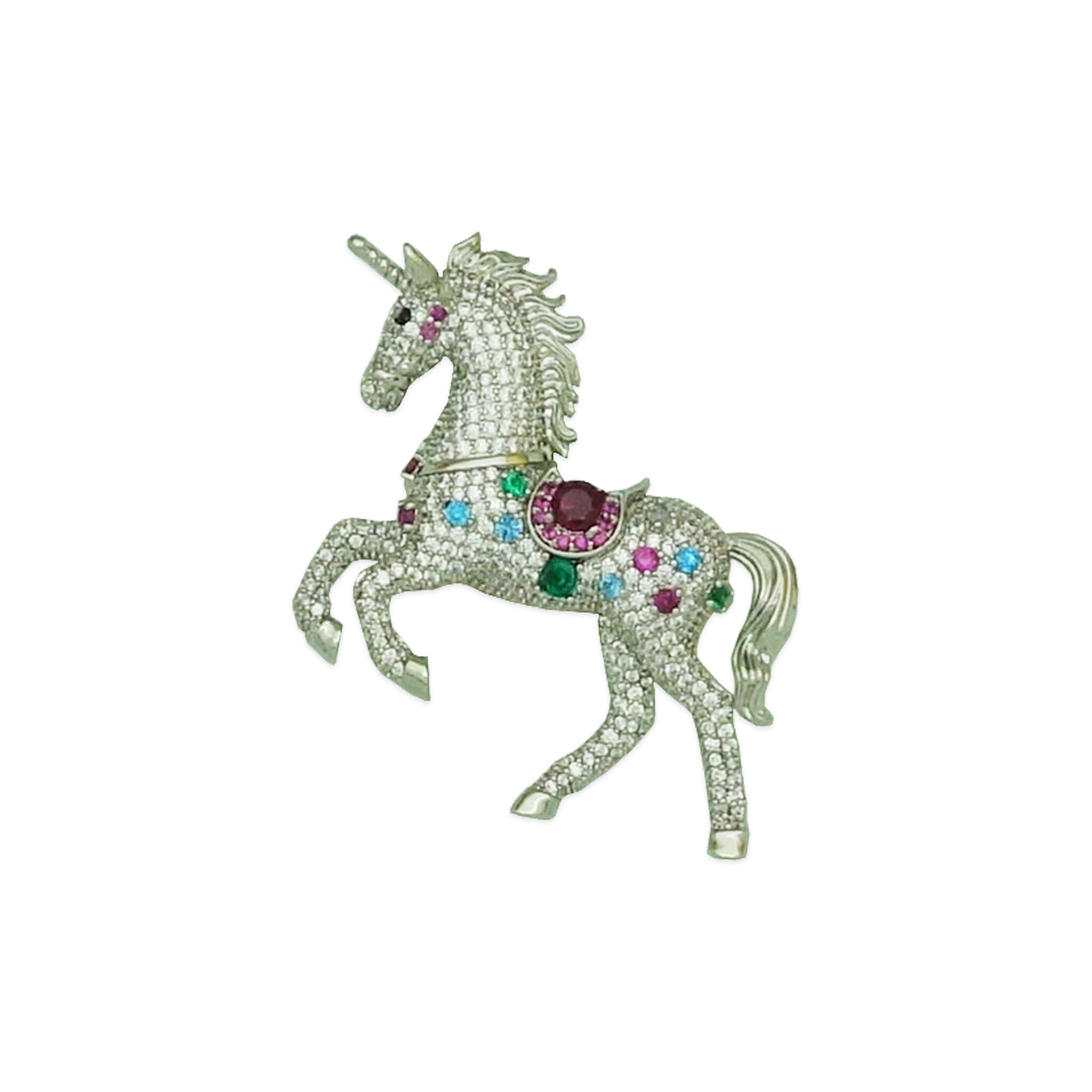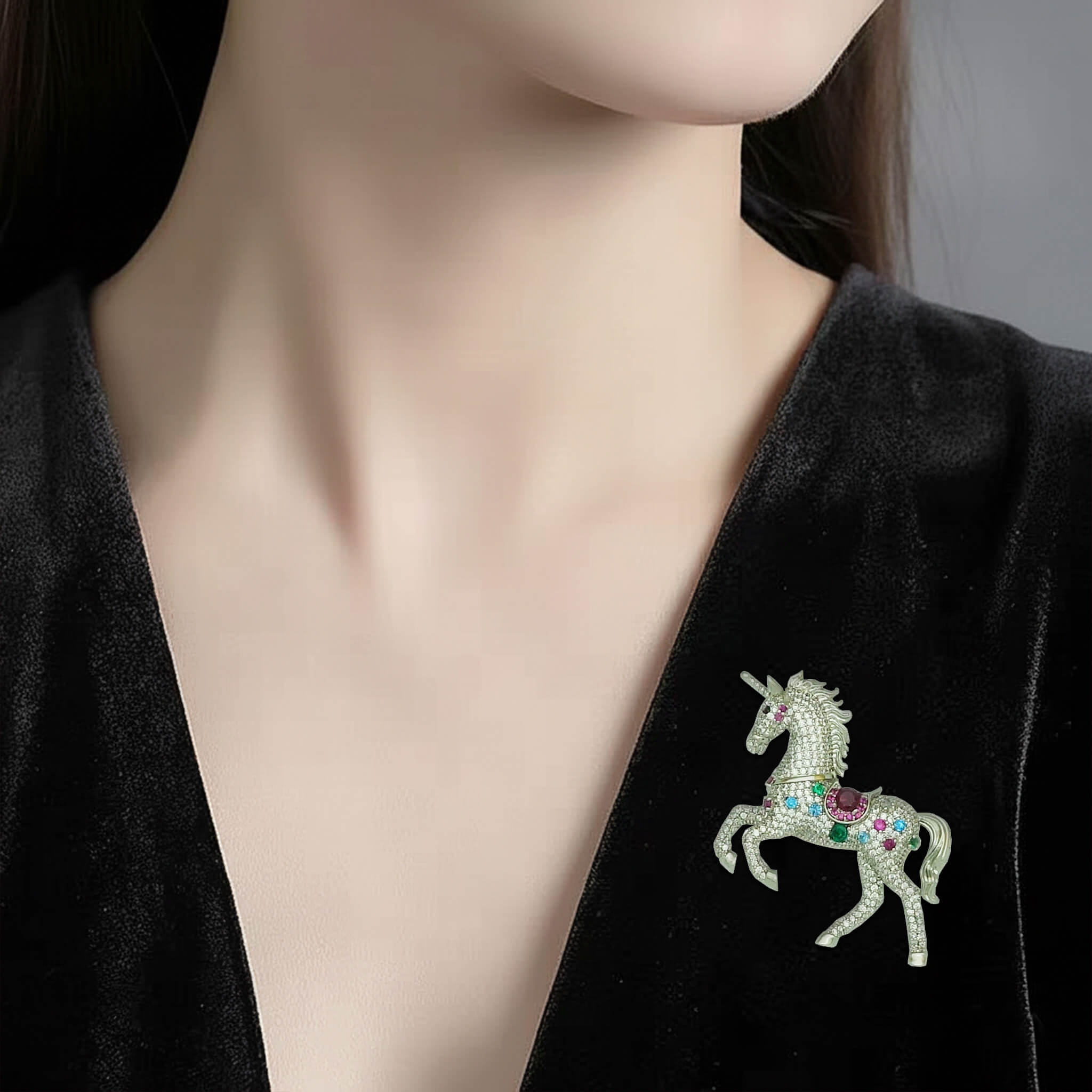 This breathtaking Celestial Fire Unicorn of Abundance and Ascension Brooch is a true work of art, masterfully crafted in metal and lavishly encrusted with shimmering crystals. Every curve is sculpted with precision—from the flowing mane and raised, powerful stance to the brilliant gemstones set across its body in harmonious colors symbolizing vitality, prosperity and success. The premium finishing gives it a radiant, jewel-like glow that catches the light beautifully, making it equally stunning as a wearable statement piece or a collector’s Feng Shui talisman. Elegant, refined and unmistakably luxurious, this Unicorn brooch exudes prestige and positive presence the moment it is seen.