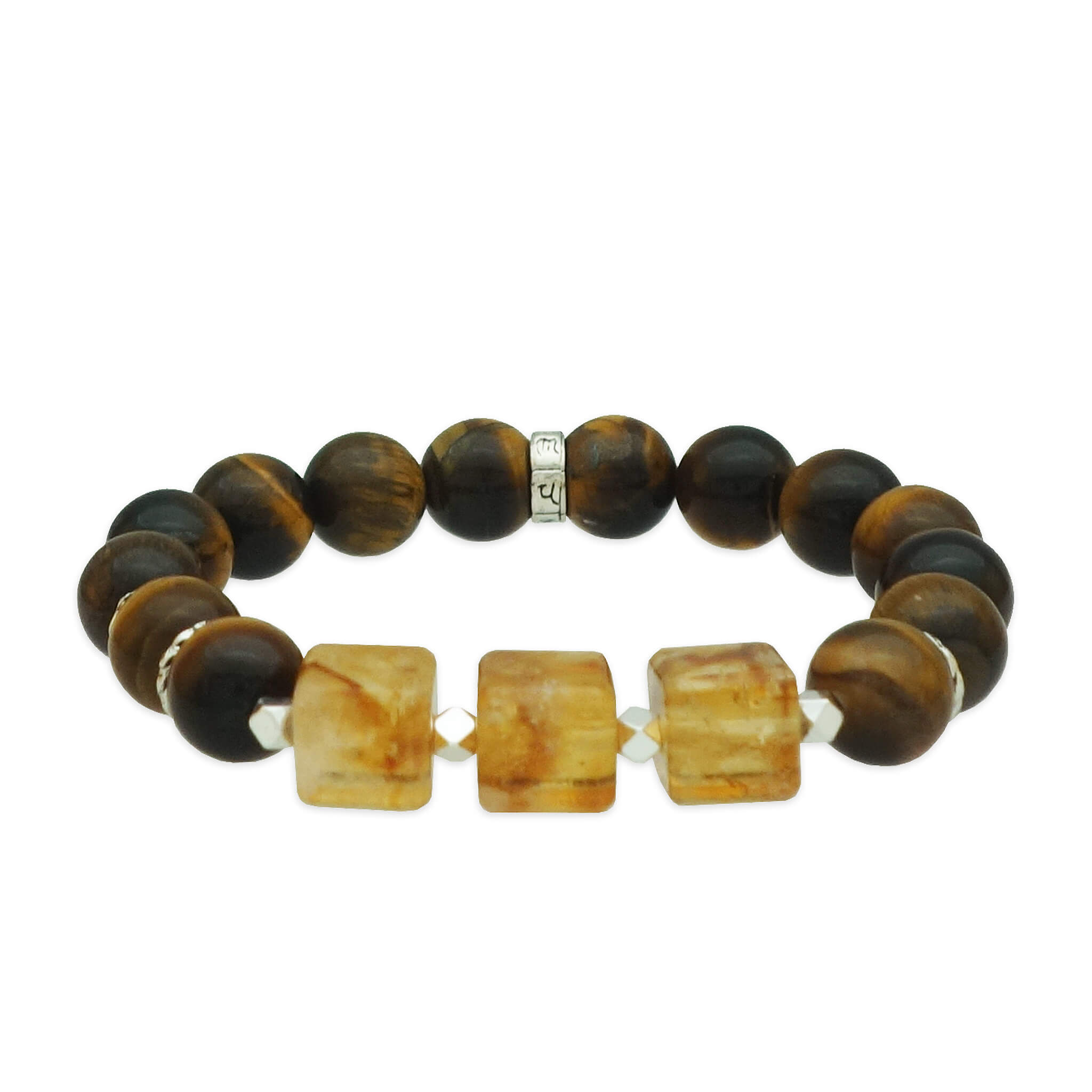This elegant bracelet is beautifully crafted with Tiger Eye and Citrine, two crystals closely associated with the Earth element in the Five Elements system. It is ideal for those whose lucky element is Earth or anyone seeking stability, grounding and steady emotional support. In Chinese metaphysics, Earth represents stability, patience, nourishment and a strong sense of security. When in balance, it fosters resilience, reliability and a calm, centred mindset. When excessive, Earth energy may create stubborn or overly conservative behaviour, and when deficient, it may lead to anxiety, worry or feelings of insecurity. The bracelet is further enhanced with a silver charm engraved with the sacred Six-Syllable Mantra “Om Mani Padme Hum,” a mantra revered for inviting compassion, clarity, and gentle spiritual support.