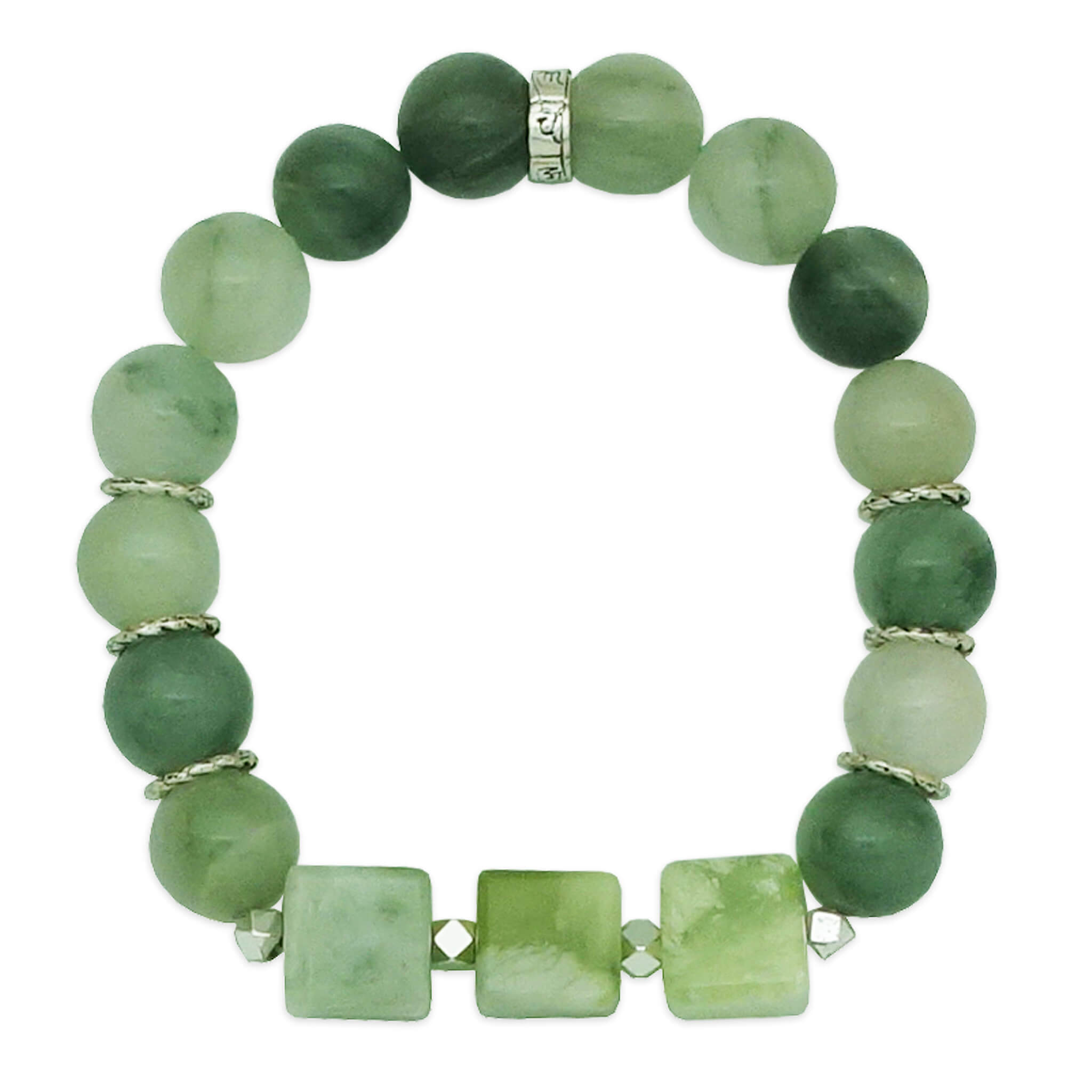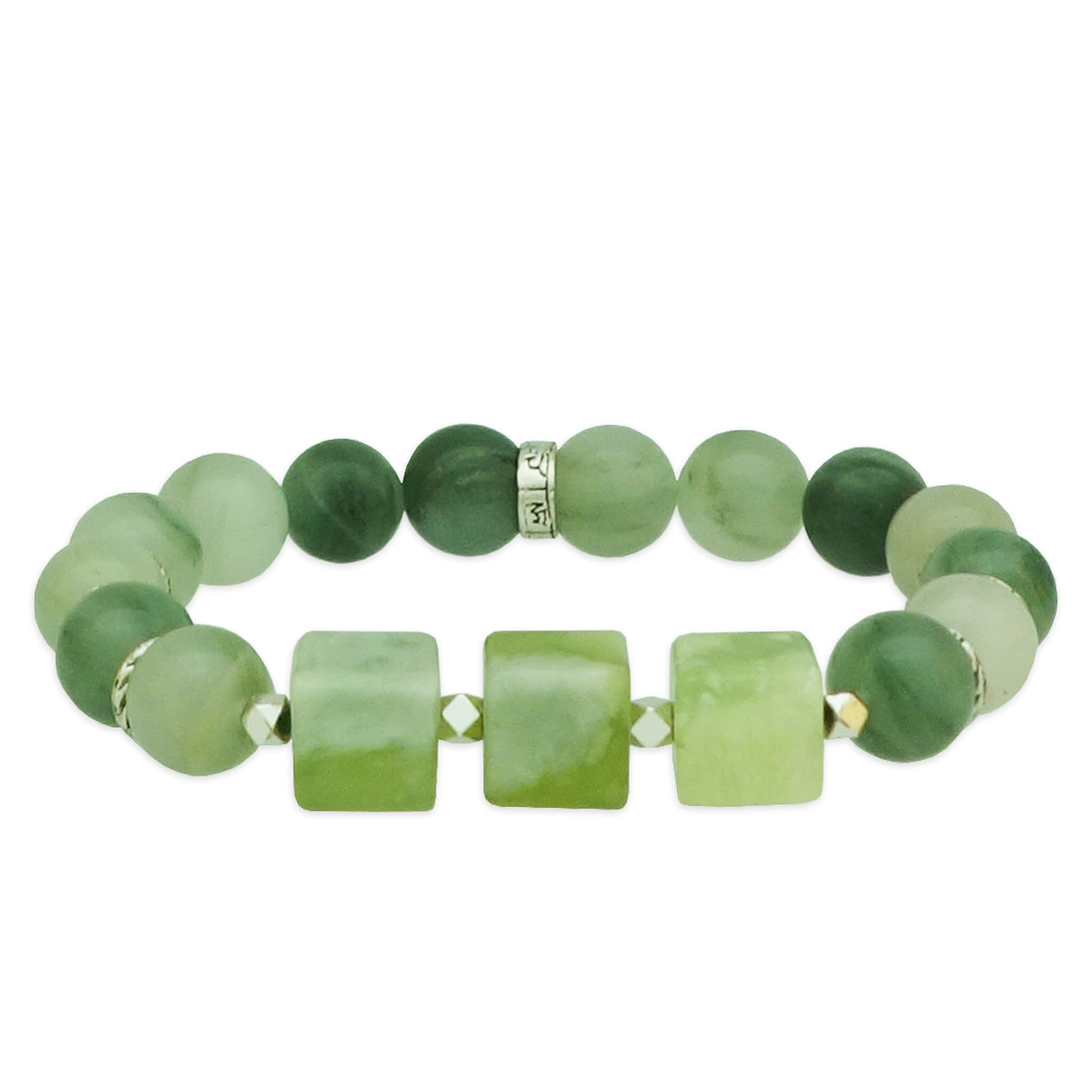 This elegant bracelet is beautifully crafted with Green Aventurine, a crystal closely associated with the Wood element in the Five Elements system. It is ideal for those whose lucky element is Wood or anyone seeking renewal, growth, and steady personal progress. In Chinese metaphysics, Wood represents vitality, creativity, expansion, and life force. When in balance, it promotes flexibility, motivation, and innovative thinking, while imbalances may manifest as impatience, restlessness, low energy, or lack of drive. The bracelet is further enhanced with a silver charm engraved with the sacred Six-Syllable Mantra “Om Mani Padme Hum,” a mantra revered for inviting compassion, clarity, and gentle spiritual support.