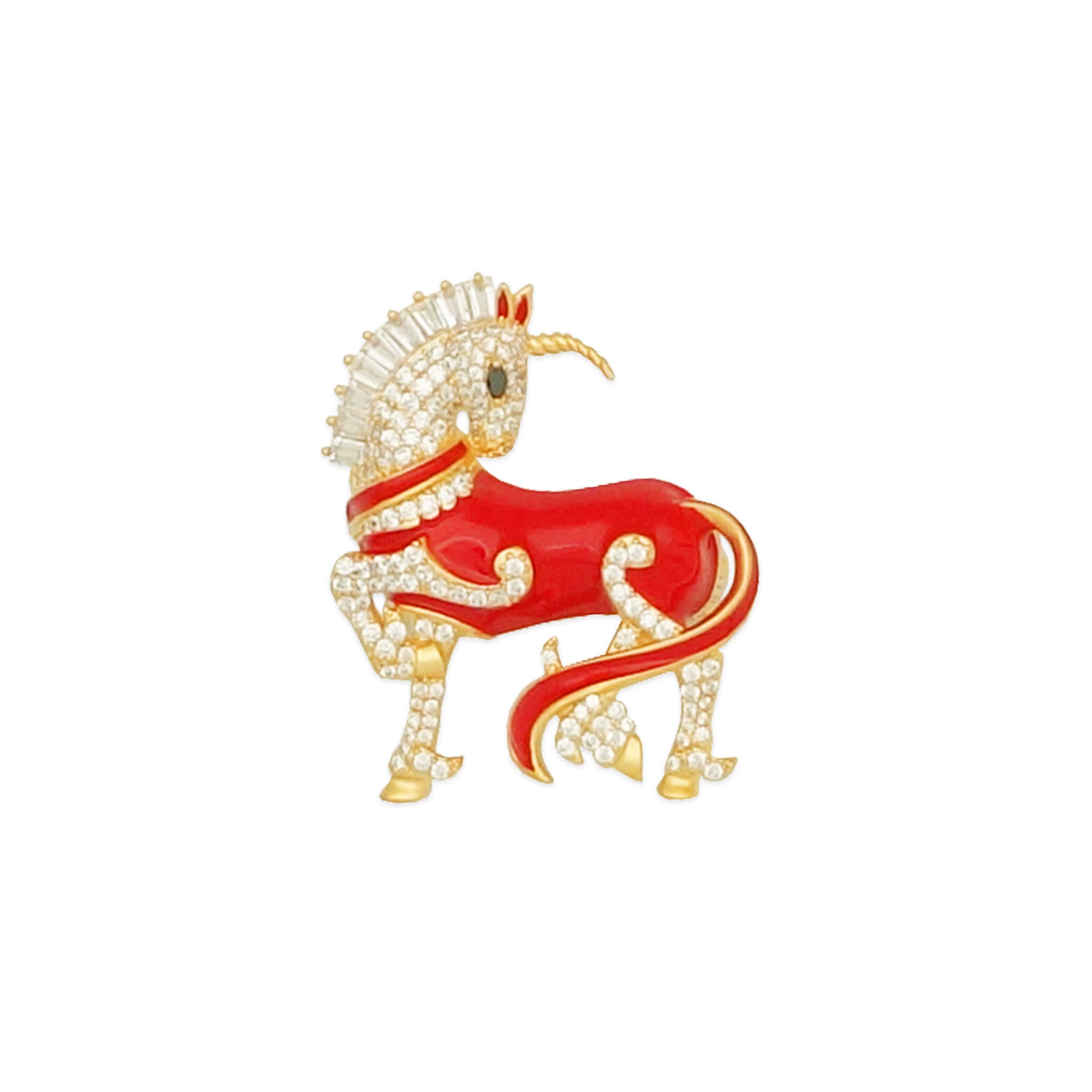 Radiant, refined and irresistibly eye-catching, this bejewelled Aurelia Unicorn of Ascension piece is a true statement of elegance and power. Every curve is lavishly adorned with sparkling stones, accented by rich enamel tones and finished in a luminous gold setting. The craftsmanship is exquisite — from the graceful posture of the unicorn to the finely detailed mane, tail and spiral horn — creating a piece that feels both luxurious and alive. Whether worn on clothing, displayed on a bag, or kept as a treasured feng shui talisman, it instantly elevates your presence with confidence, charm and brilliance.